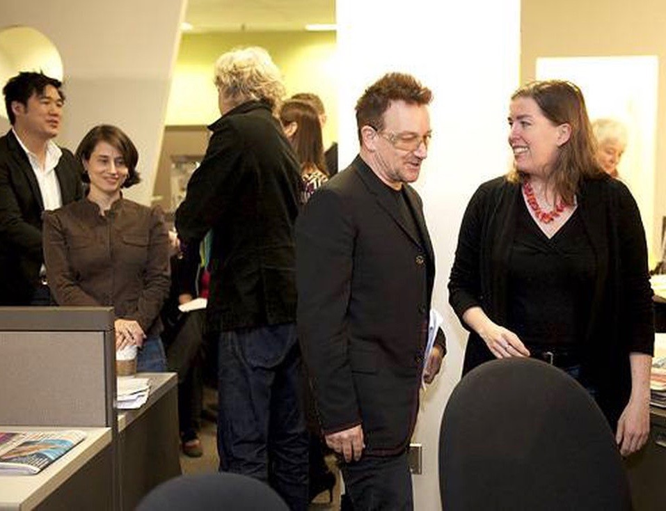 “Bono chats with The Globe and Mail’s Stephanie Nolen, a former Africa correspondent for the paper.”