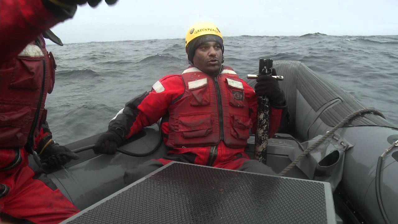 Once on board the rig, Naidoo attempted to hand over a 50,000 name-long petition calling for the Scottish firm Cairn – which operates the Leiv Eiriksson rig – to stop drilling in the Arctic, and requested a copy of their oil-spill response plan. (He believes they don’t have one, because it wouldn’t be possible to contain such a catastrophe if it happened in the Arctic).