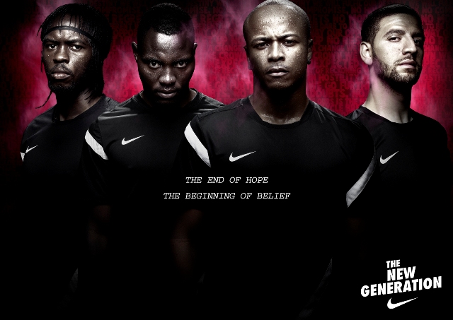 Probably the most striking ad is Nike’s “New Generation” ad with Andre Ayew (of Olympique Marseille and Ghana), Gervinho (of Arsenal and Cote D’Ivoire), Adel Taarabt (Queens Park Rangers and Morocco) and Kwadwo Asamaoah (Udinese and Ghana). At least three of these players – Ayew, Gervinho and Asamaoah – will be involved in matches today. The ad is part of Nike’s series of commercials, “The New Masters of Football,” which aims to shake off “the stereotypical view of the African game.” The “New Generation” ad opens with a voice over by an actor: “Too often we have seen African dreams turned to dust, or end in defeat, no matter how glorious. We pledge to break the cycle.”