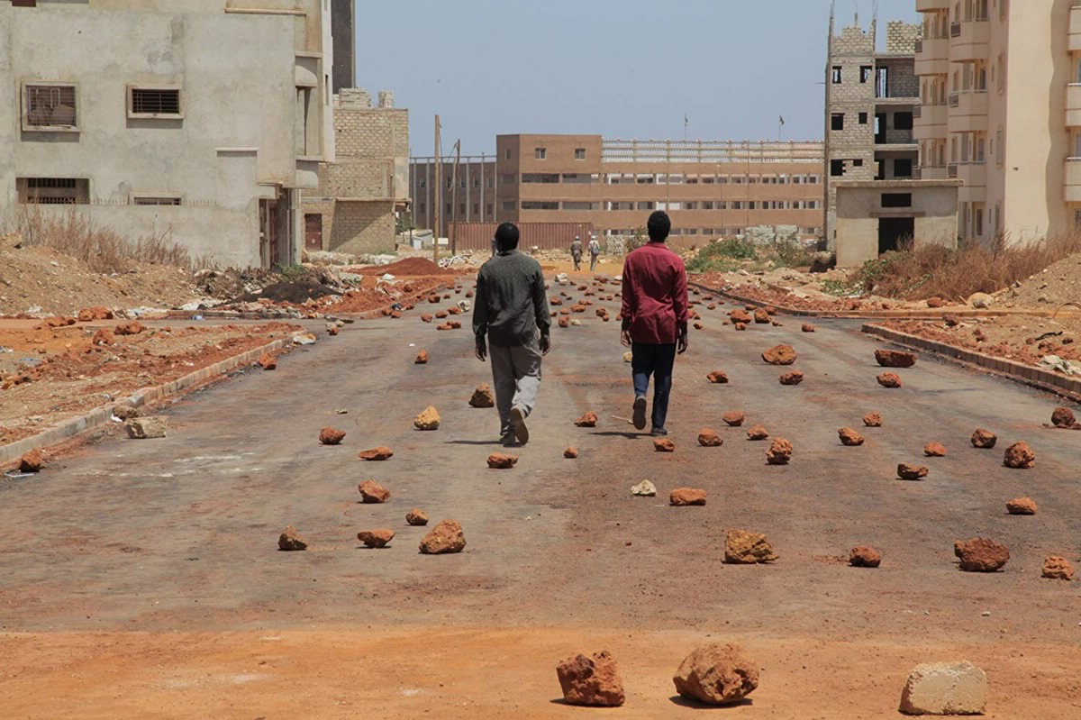 Satché stands stagnant on a street while Gomis temporarily surrenders his dreamlike colours for reality. A series of short vignetted scenes follow that feel like portraits in Satché’s mind as he gazes into his ‘home’. Three children dance in unison on a crowded road, a group of men argue and fight, a petrol bomb is thrown, a women shouts through the screen “You want to know the truth. The king’s sons are princes? The prince’s sons are thugs. There’s a gas and coal shortage. Even the teachers are on strike. What will become of our children tomorrow? We are fed up! Especially the women.” People bustle in a mass protest. Gomis reapplies his fantastical colour palette as Satché walks languidly, looking upon the disbanding protest. His innocence has dispersed from his face as he is once again joined with Sélé (Djolof Mbengue) who has lovingly shepherded him throughout the film.