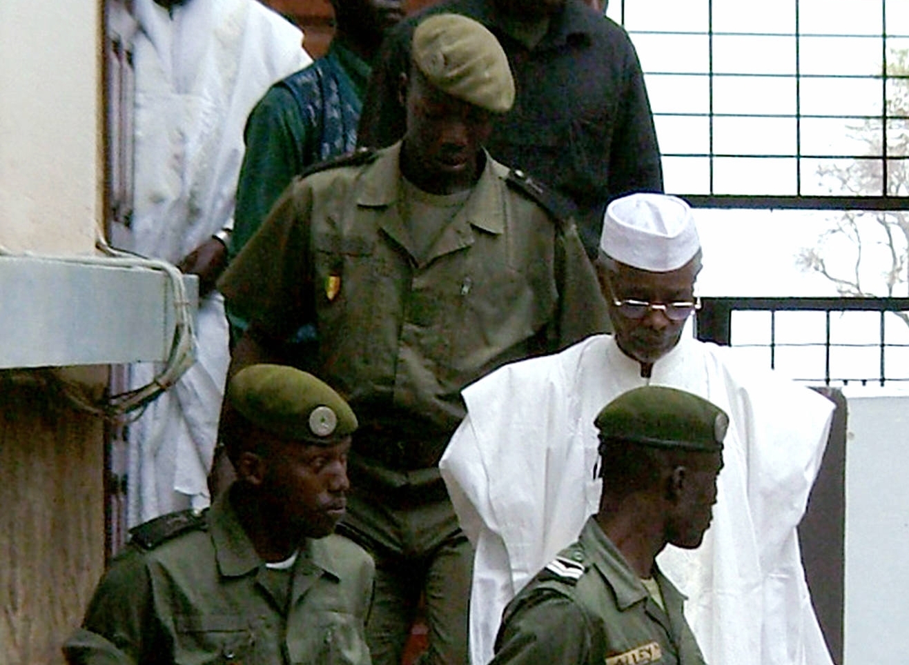 Hissene Habre with guards in Dakar. Photo Credit: AFP/RECUP SEYLLOU