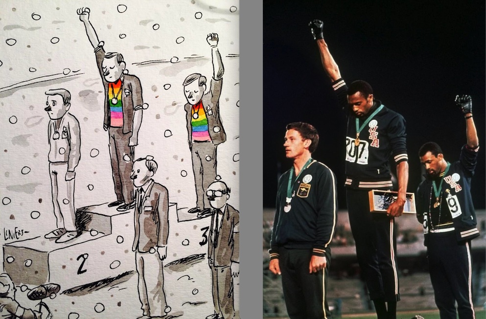 What happened when an Argentinean cartoonist took inspiration from an iconic moment in African-American struggle, replaced the black athletes with monochrome white figures to make a point about gay rights.