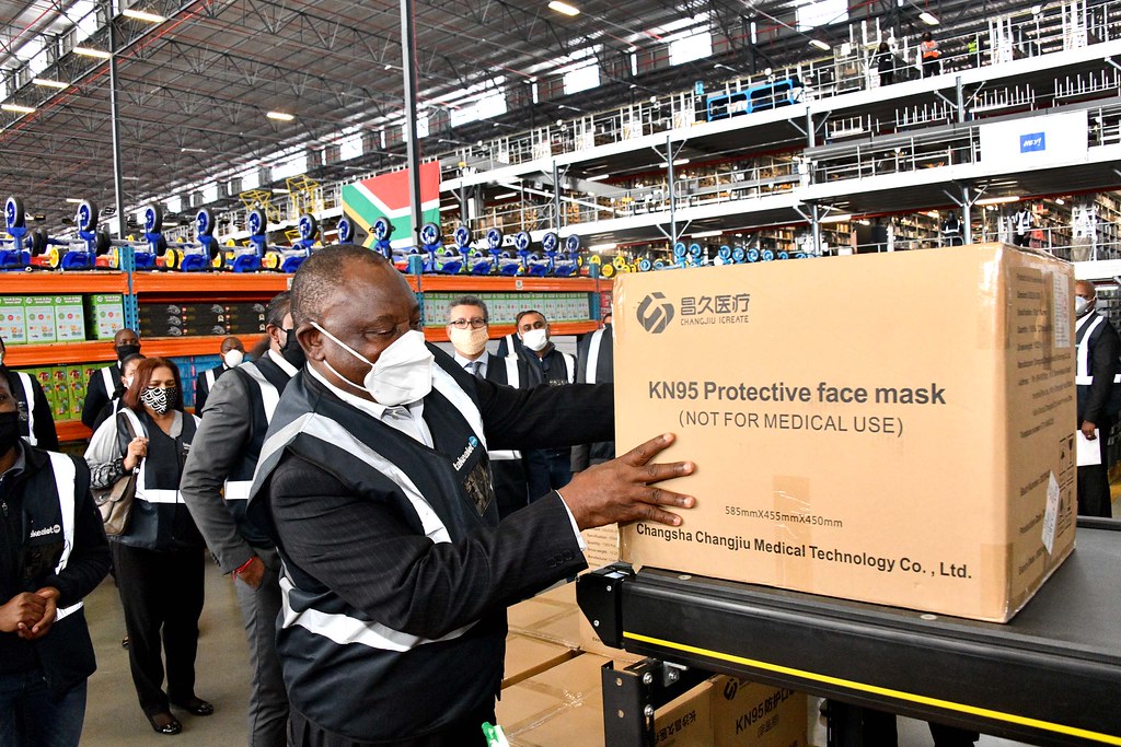 President Cyril Ramaphosa receives PPEs from Naspers. Image credit GCIS via Flickr CC.