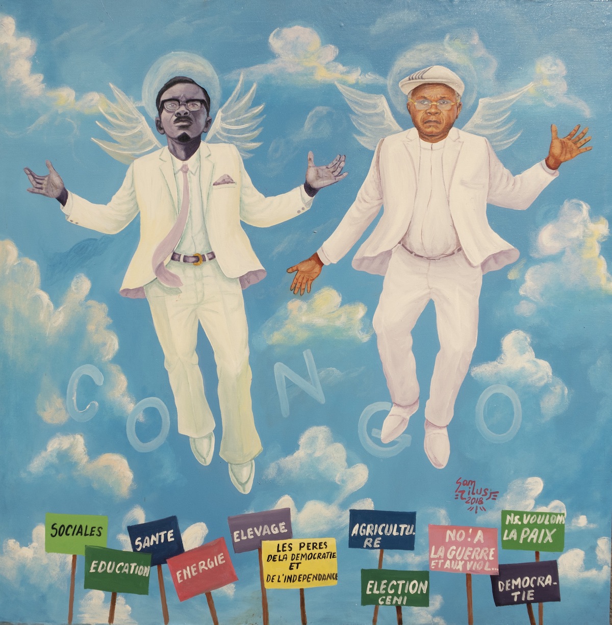 Sam-Ilus, “Les pères de la démocratie et de l’indépendance,” 2012. Courtesy: Philip Buyck, Lumumba Library.