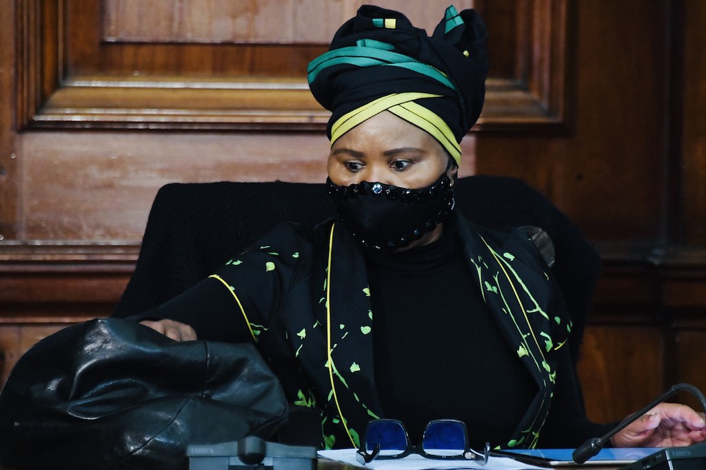 South Africa’s Minister of Social Development, Lindiwe Zulu, during a COVID-19 briefing. Image via Government of
