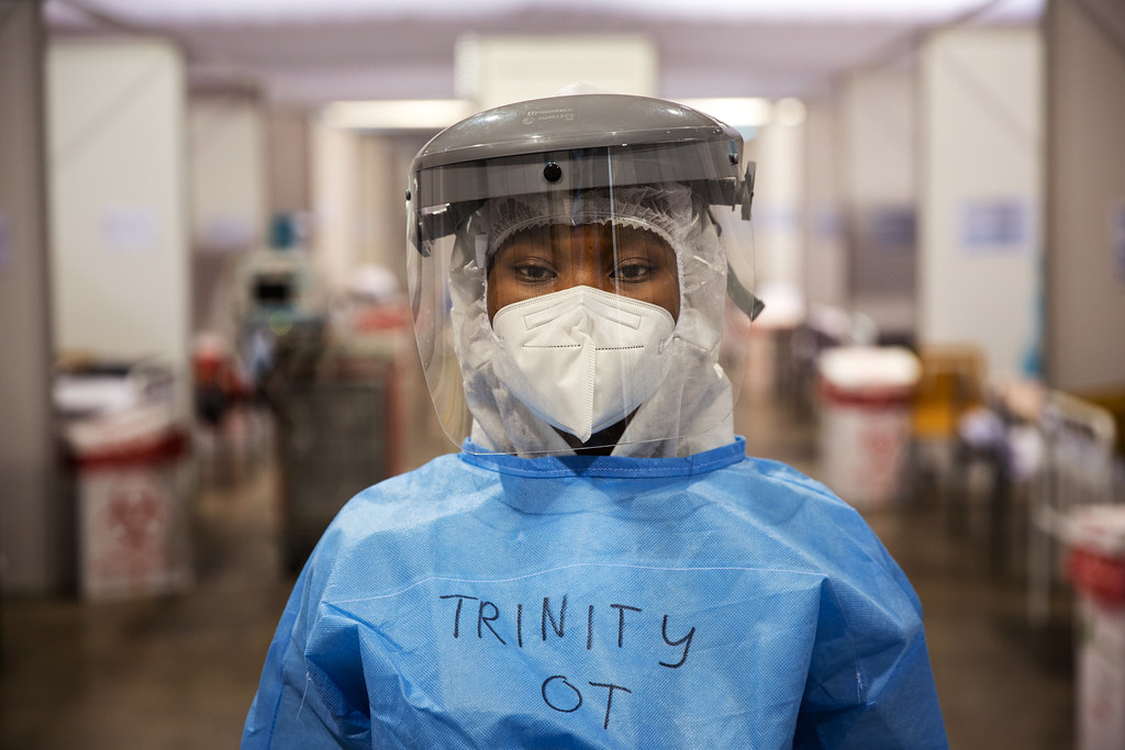 Trinity Ncube, a volunteer cccupational therapist (OT) at a COVID-19 Field Hospital in Nasrec, Johannesburg (IMF,
