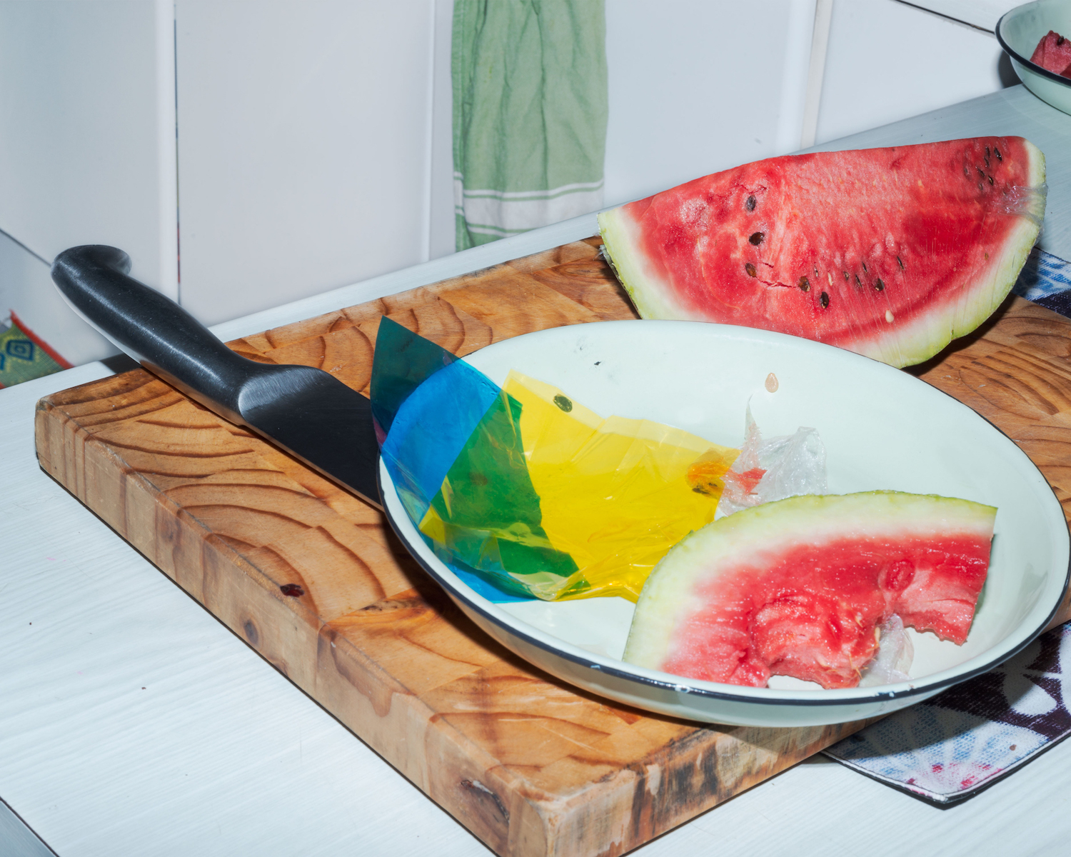 When we speak about upsetting color, the image that comes to mind is of the watermelon and cellophane paper. Your work challenges commonly held views on the everyday and the artificiality that we ascribe to the everyday through photography.