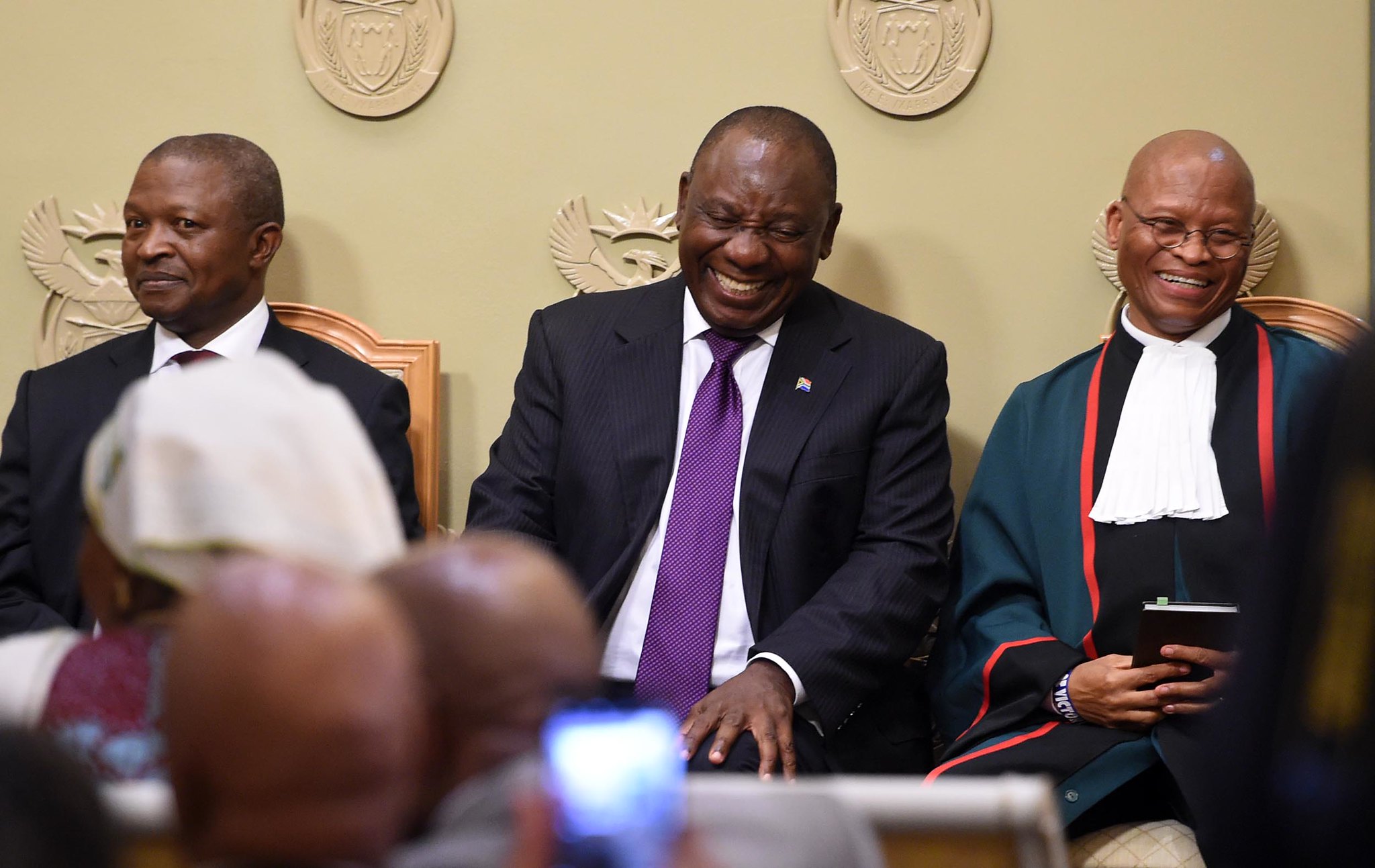 President Cyril Ramaphosa with Deputy President David Mabuza and Chief Justice Mogoeng Mogoeng at the swearing-in