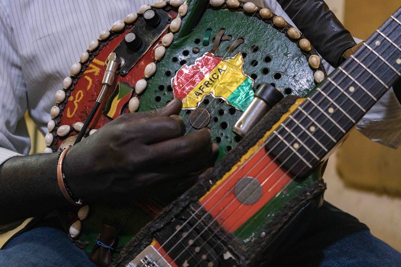 I have my own weapon: a tambo-guitar, a special instrument I made many years ago. It combines an electric guitar I found in the scrap heaps of Port Sudan with a five-string tambour my father gifted me.