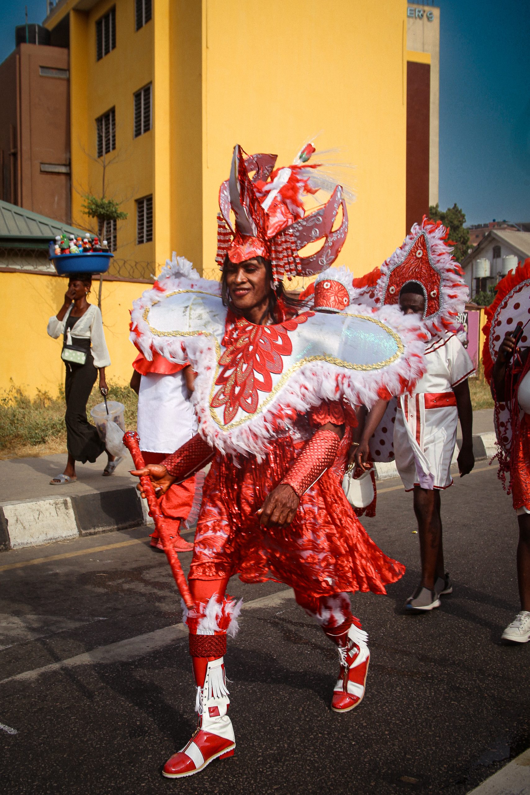 By November, the vibrant Afro-Brazilian community of Lagos is preparing for a month of cultural celebration, one that honors their rich heritage with a blend of solemnity and joy. Throughout the month, a series of events unfolds, beginning with thought-provoking lectures, followed by a sense of reverence as families gather for Friday prayers at the mosque and a Catholic mass at the Cathedral of the Holy Cross. These observances provide a moment to reflect on the community’s deep roots, but the heart of the celebration beats louder with the arrival of the Campos Caretta Carnival troupe. Dressed in their colorful finery, they lead a procession through the streets of the Brazilian Quarters, accompanied by families and neighbors, walking in unity and pride.