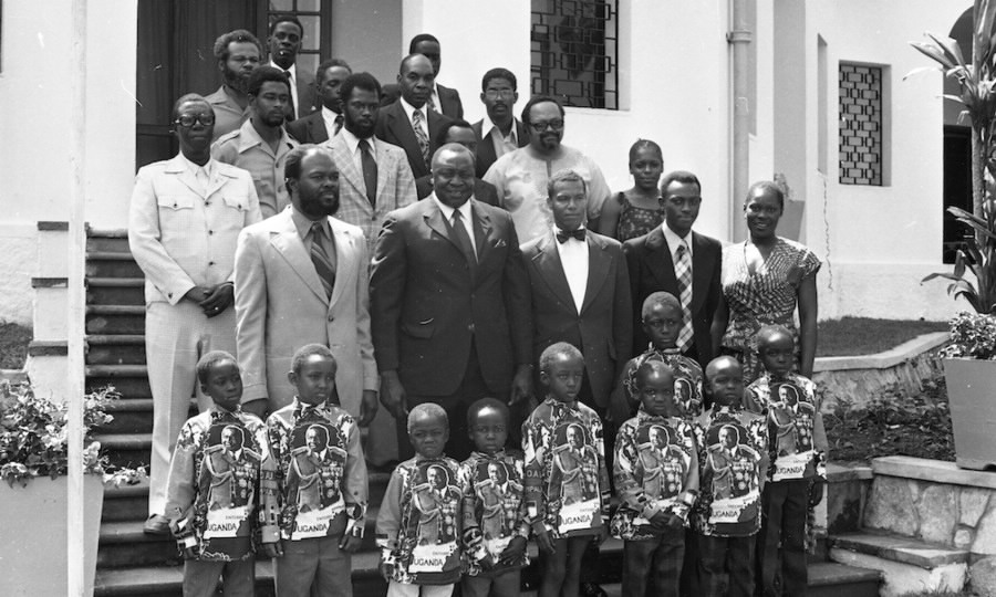 Idi Amin came to power on 25th January 1971, following a military coup against President Milton Obote. Amin enjoyed calling his regime a “government of action,” and he regularly launched public campaigns aimed at transforming Uganda’s economy and society. The most notorious of these was the “Economic War,” which began in August 1972 with the summary expulsion of the country’s Asian community. As many as 80,000 Ugandans of Asian descent—many of whom had lived in Uganda for generations—had to flee the country within 90 days. Beyond the public eye, the Amin regime was even more brutal still: during the 1970s, as many as 300,000 Ugandans died in prison barracks, police cells, and government-run torture chambers. Amin was eventually overthrown in April 1979, following an invasion led by the army of Tanzania.